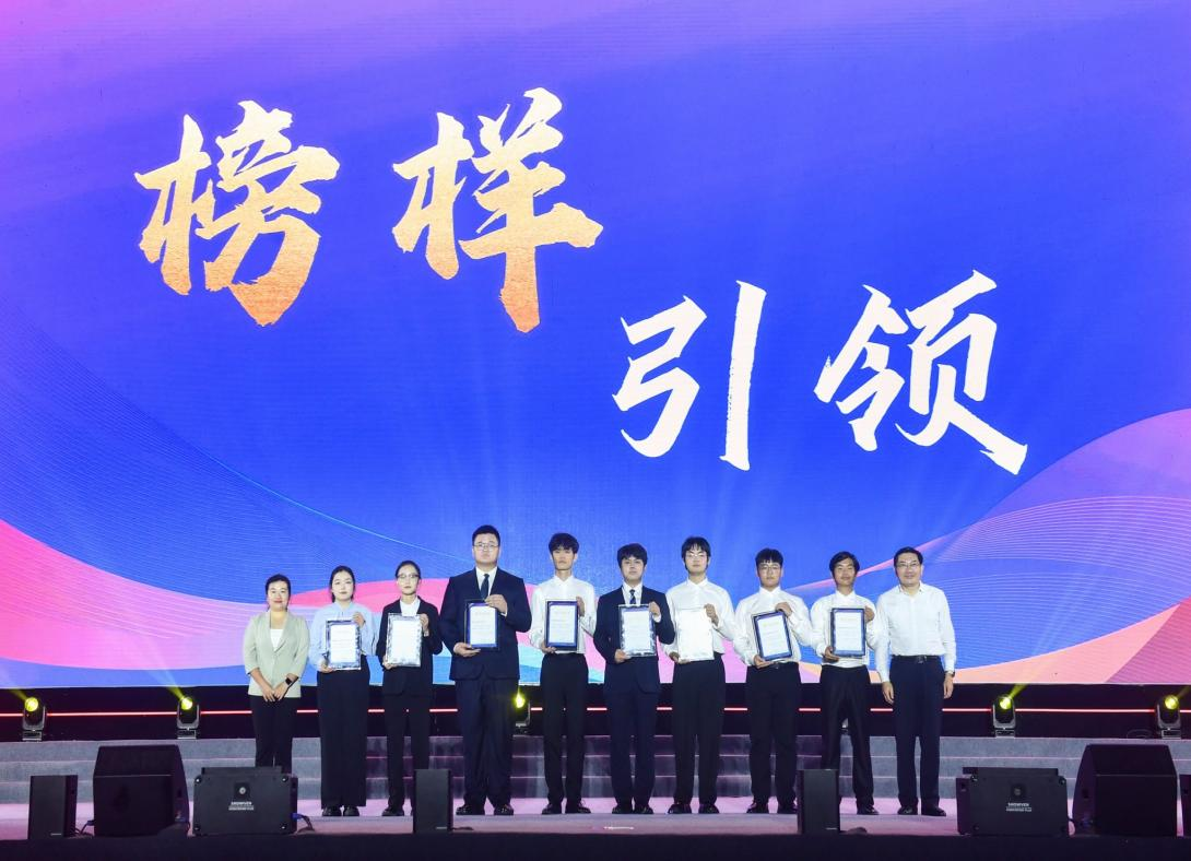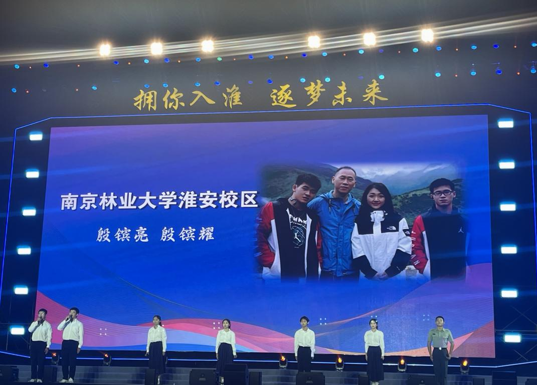 本次是淮安市连续第五年为大一新生举办集体开学典礼。作为在淮高校的一份子,南京林业大学淮安校区深度参与其中,晚会既有一对双胞胎“新林人”作为新生代表发言,也有南林淮的表演队伍带来的精彩节目演出,更有南林淮学子作为榜样代表荣膺表彰。在《榜样引领》环节,励志新生许翰勋、陈垚吉同学,斩获“蓝桥杯”软件设计大赛一等奖的王玉旺同学,分别作为优秀新生代表和优秀学生代表在市领导与各校领导的共同见证下获得表彰。他们手中的荣誉证书,彰显着南林淮学子在专业领域与品德修养上的双重坚守,诠释着南林“诚朴雄伟,树木树人”的信念深耕。