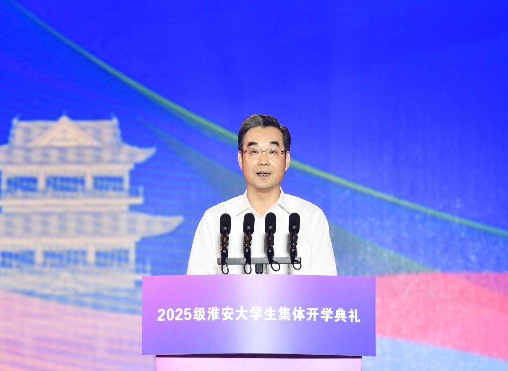 9月28日,拥你入淮 逐梦未来——2025级淮安大学生集体开学典礼举行。市委书记史志军出席并致辞。市长顾坤出席并为创新创业类优秀团队代表颁奖。市领导胡毅、贺宝祥、封蕴珊、王苏君,省属驻淮高校、市大中专院校领导嘉宾以及3300名新生代表参加活动。南京林业大学淮安校区党委常务副书记、管委会常务副主任黄学明和校区282名新生代表参加了此次活动。