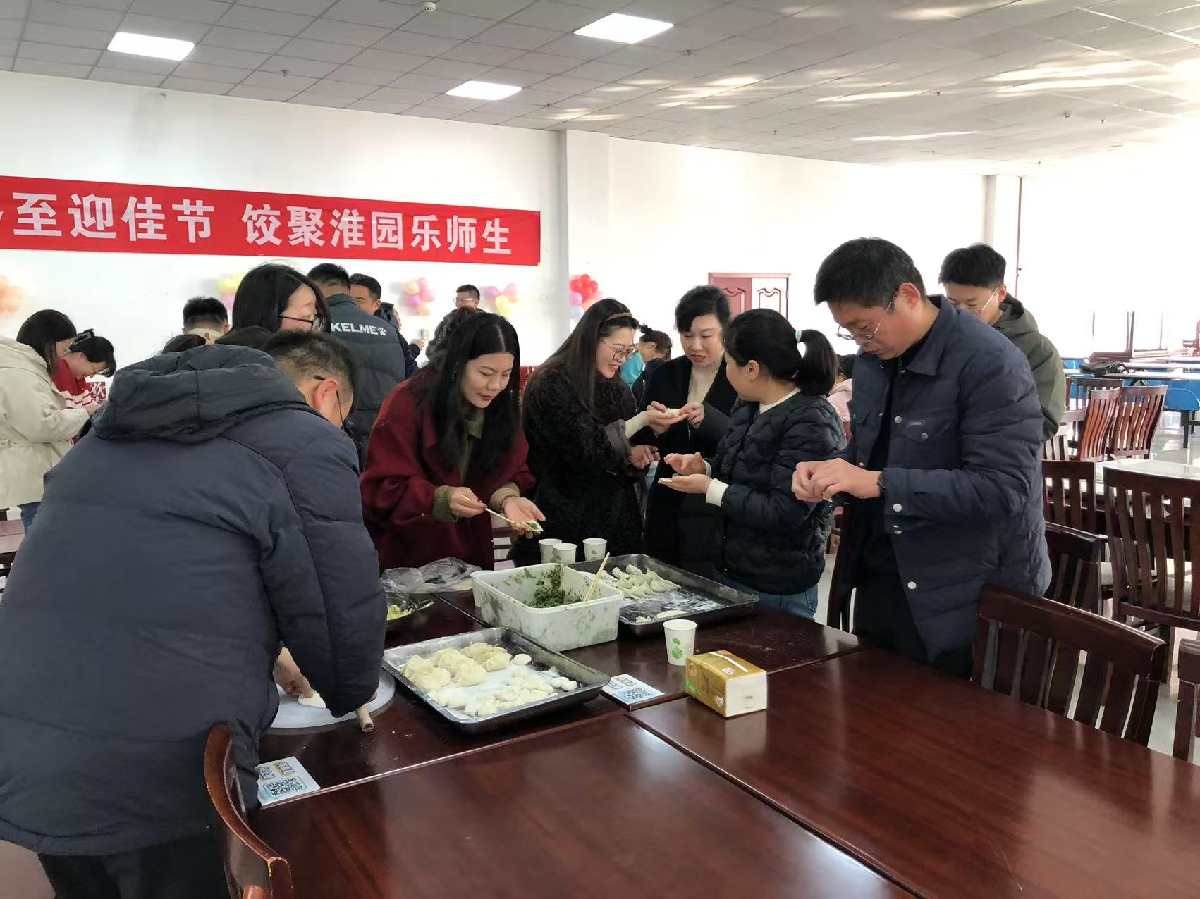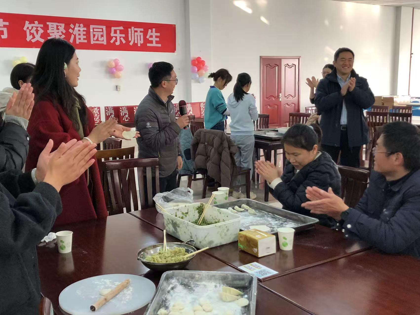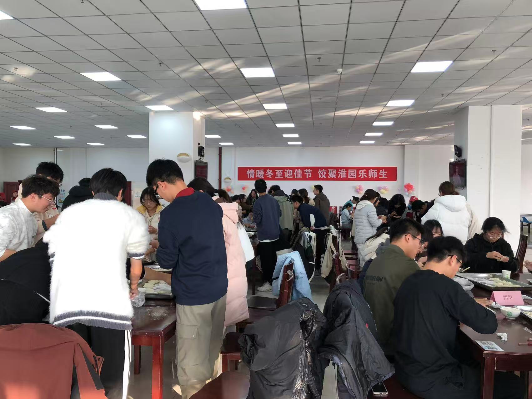 为弘扬中华民族优秀传统文化,营造温馨祥和的节日氛围,增进师生情感交流,丰富校园文化生活,12月18日下午,淮安校区工会联合后勤保障部在林苑日丽餐厅三楼教工餐厅,成功举办“情暖冬至迎佳节 饺聚淮园乐师生”冬至包饺子主题活动。淮安校区党政办主任李新宇、教学科研部部长孙芹菊、后勤保障部部长金建州,与师生代表100余人欢聚一堂,共迎冬至。