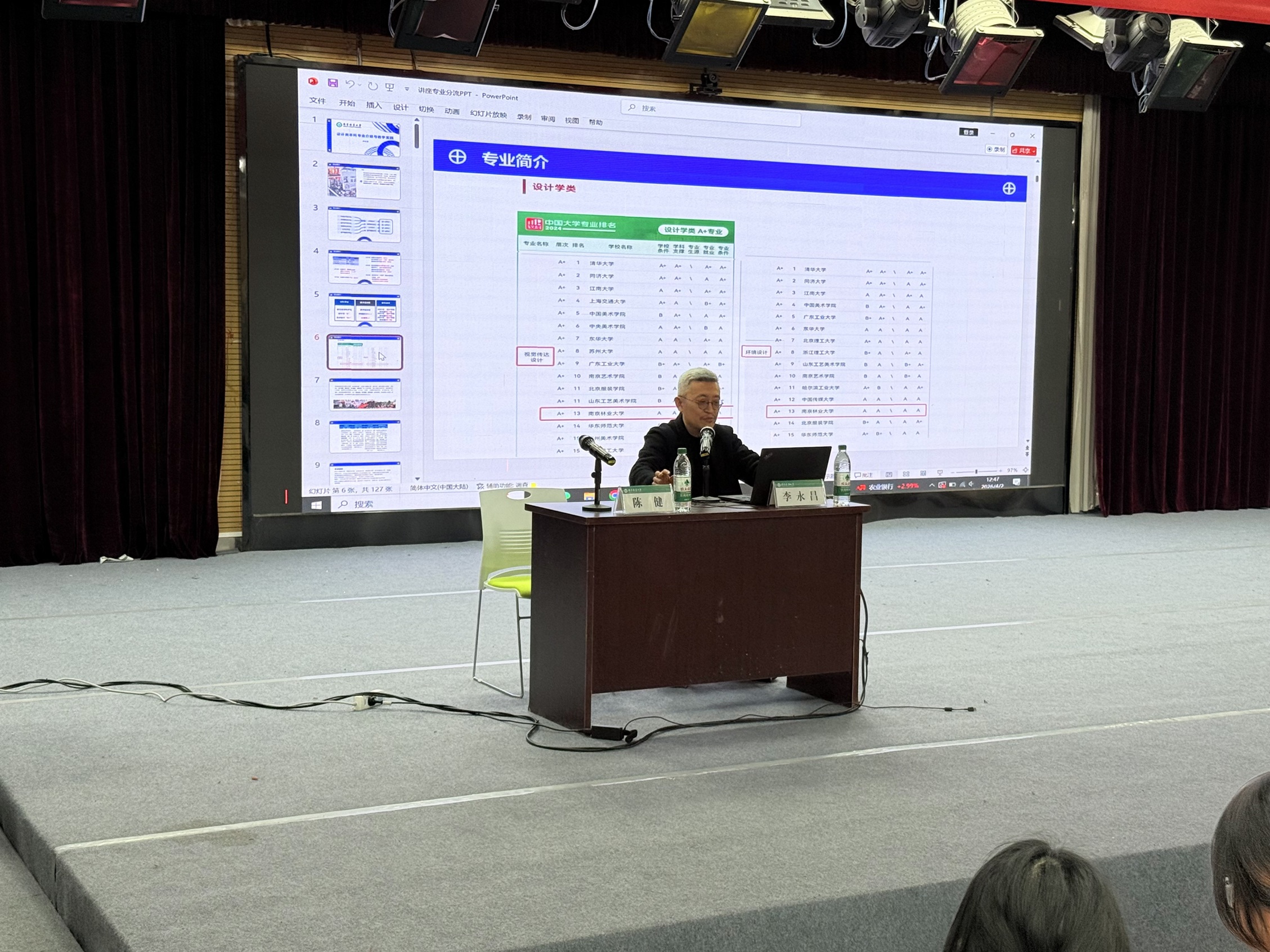 李永昌副院长结合学科评估、第三方评估机构排名等权威数据,系统介绍了学院四个设计类专业的办学特色与学科优势。他从培养目标、课程体系、师资力量到就业前景,逐一展开分析,让同学们对各专业有了直观而深入的认识。同时,他详细解读了专业分流实施办法,强调“志愿优先、绩点排序”的核心原则,并现场公布了本年度各专业招生计划与班级设置,确保分流工作公开透明。