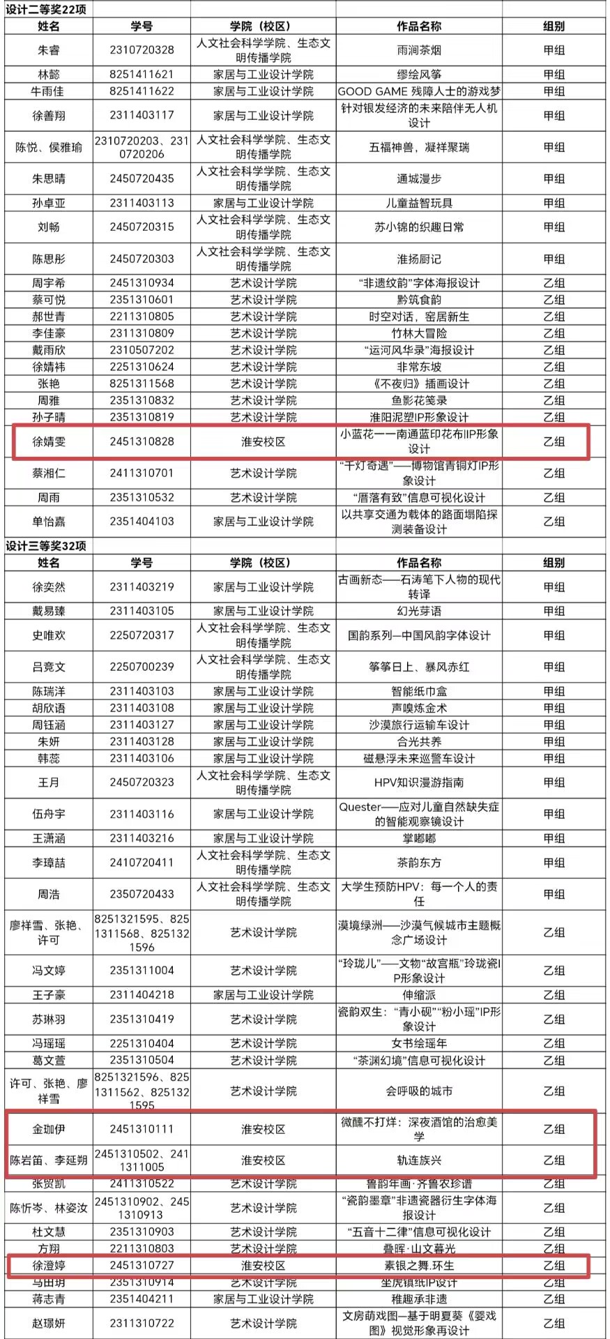 设计类比赛中,校区学子获得二等奖1项、三等奖3项。徐婧雯的《小蓝花——南通蓝印花布IP形象设计》获乙组二等奖;金珈伊、陈岩笛、李延朔、徐澄婷四位同学的作品分获乙组三等奖。创意与实用并重,彰显了设计专业学子的创新实力。