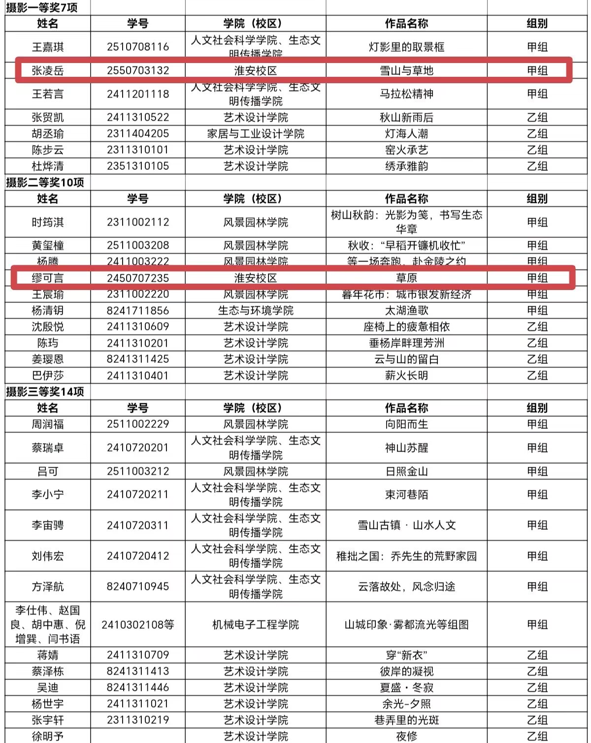 摄影类赛事中,校区收获一等奖1项、二等奖1项。张凌岳的《雪山与草地》荣获一等奖,缪可言的《草原》获二等奖。镜头捕捉自然之美,光影之间尽显艺术张力。
