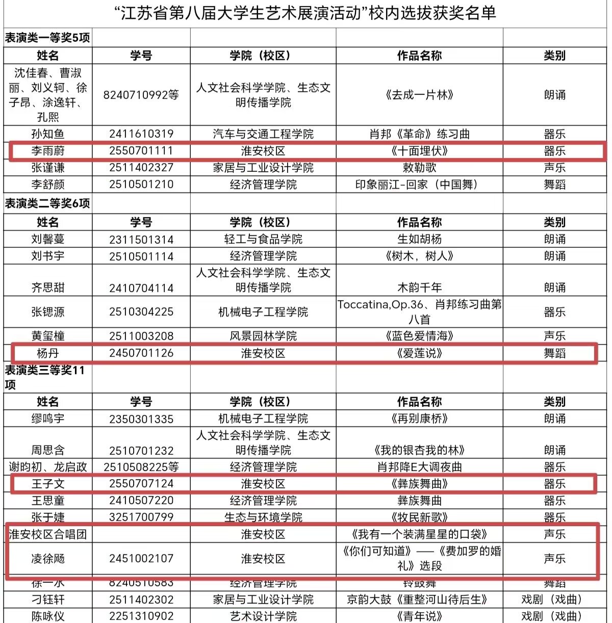 此次校内选拔,淮安校区在多个艺术类别中全面开花,获奖覆盖面广、奖项含金量高,既是学子艺术素养与综合能力的集中体现,也是校区深耕美育、以文化人的生动缩影。未来,淮安校区将继续以艺术赛事为牵引,丰富美育实践载体,搭建多元成长平台,持续提升学生的审美素养与创造力,让美育之花在校园沃土上绚丽绽放。