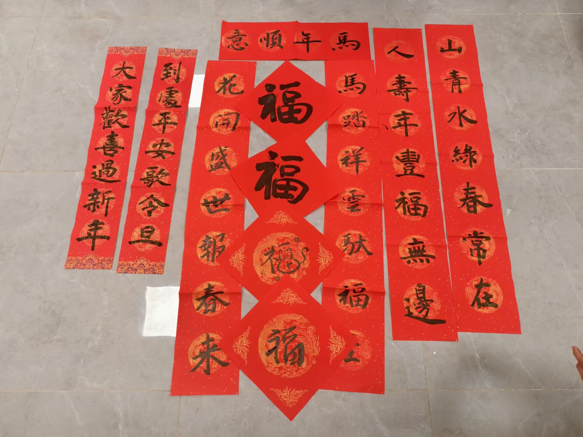 活动现场分为剪纸创作与春联书写两大区域,沿宿舍公共空间展开。同学们相聚一堂,亲手创作。剪纸区内,红纸轻盈翻转,水杉枝叶、校园景致等图案渐渐成形;春联书写区则墨香飘溢,同学们提笔挥毫,将新年愿望与宿舍情谊寄托于字里行间。一副副红联黑字,既传统又鲜活,成为连接邻里、传递祝福的文化符号。