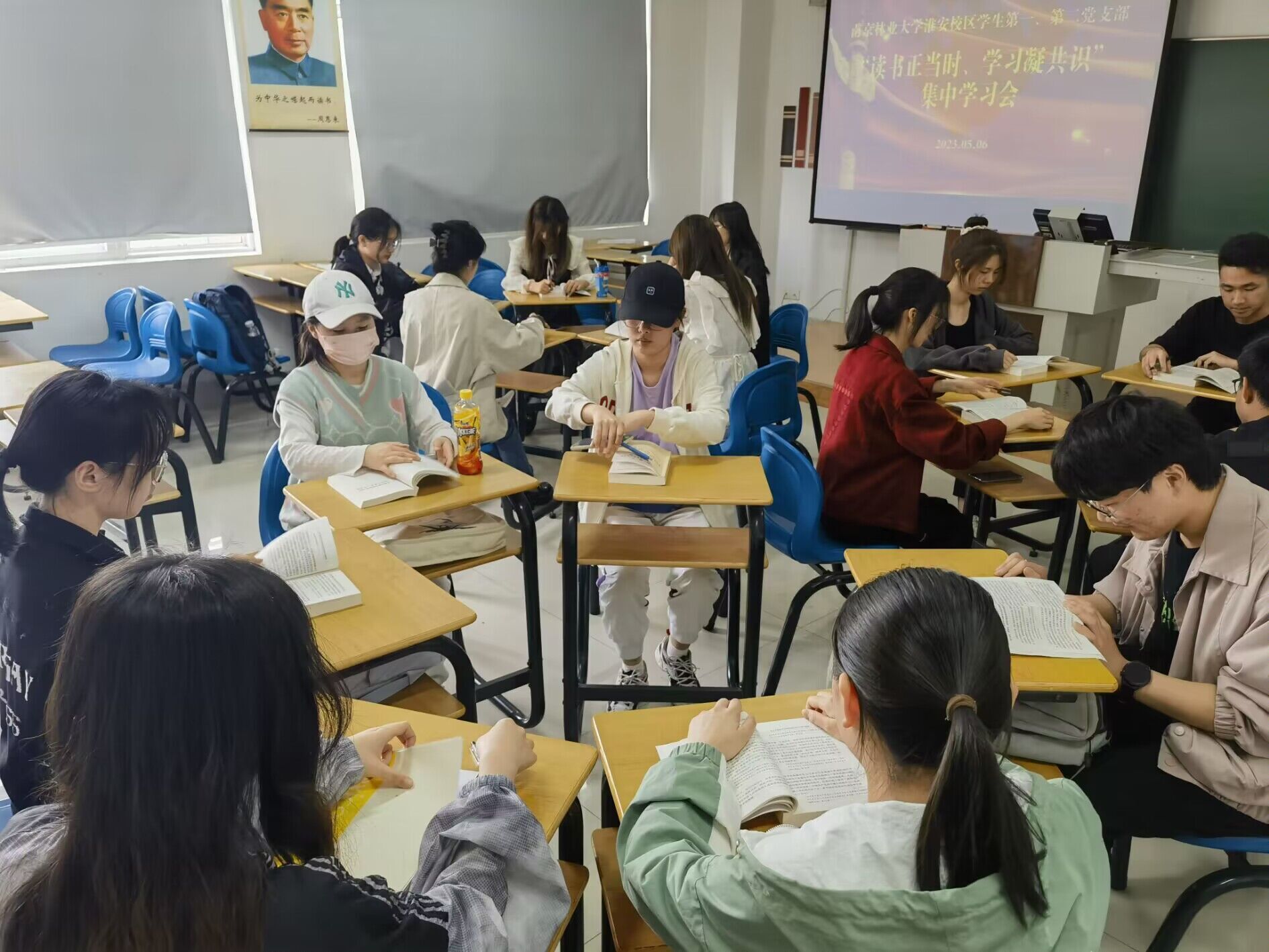 为扎实开展学习贯彻习近平新时代中国特色社会主义思想主题教育,淮安校区学生第一、第二党支部积极响应校区开展的“读书正当时,学习凝共识”活动。5月6日下午,组织学生支部预备党员开展了读书学习会。