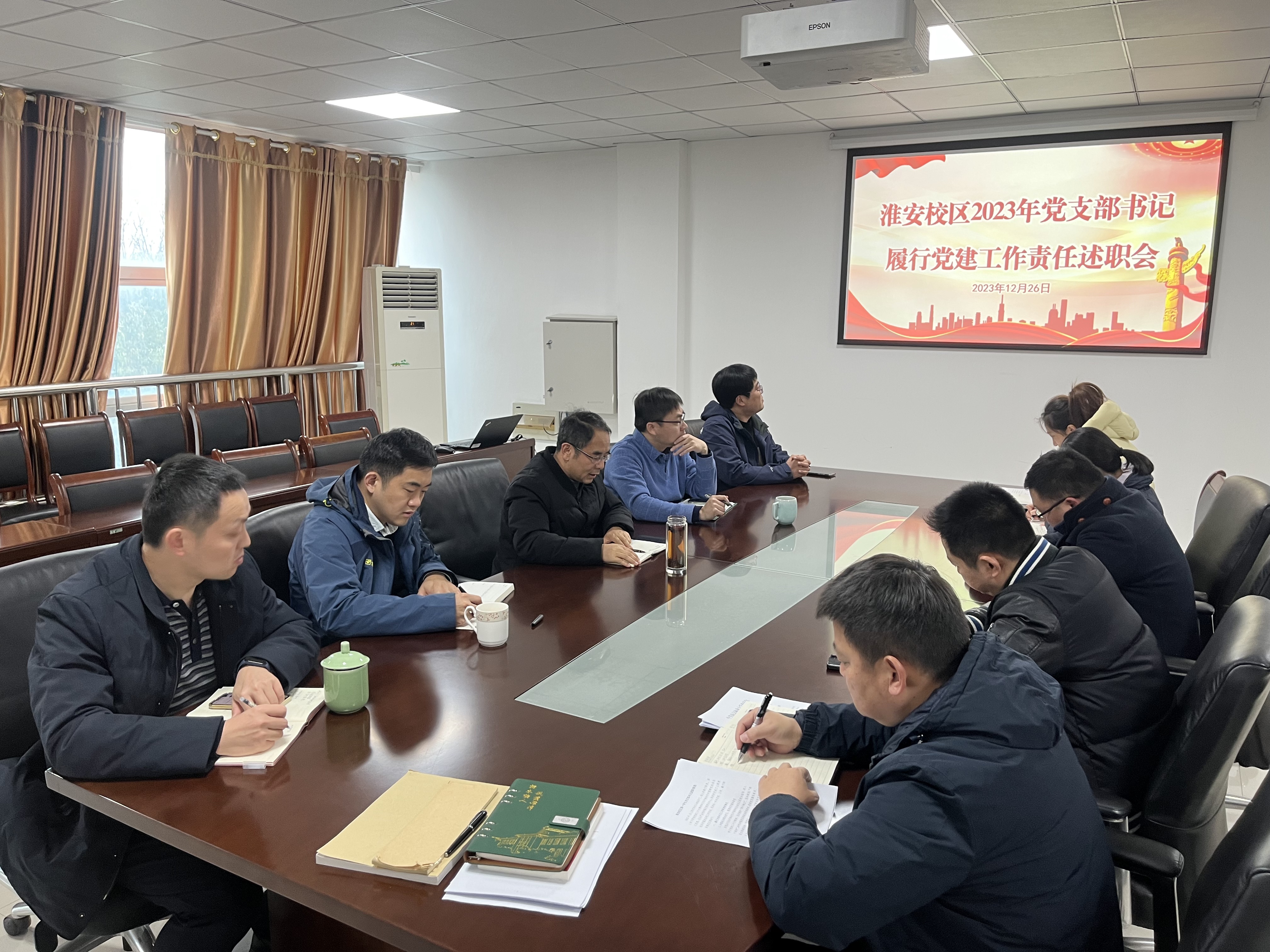 为切实加强党支部书记抓党建工作的职责,根据学校《关于开展2023年度学院级党组织书记履行党建工作责任述职暨落实全面从严治党主体责任述责述廉工作的通知》文件精神,12月26日下午,淮安校区党工委召开2023年党支部书记履行党建工作责任述职会议。淮安校区党工委委员、各支部书记和组织员参加会议。会议由淮安校区党工委常务副书记、管委会常务副主任秦天堂主持。